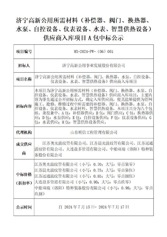 上一篇:济宁高新公用所需管材供应商入库项目成交公示
